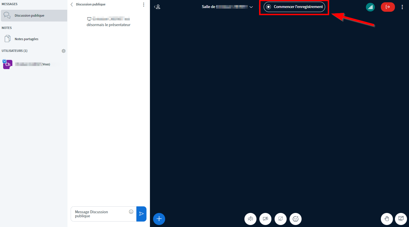 Lorsqu’un enregistrement est lancé, un message d’alerte s’affiche sur l’écran des participants.