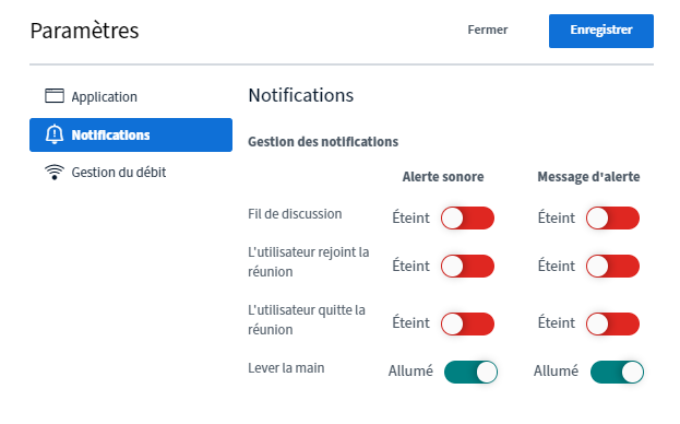 La gestion des paramètres globaux permet de gérer les notifications :