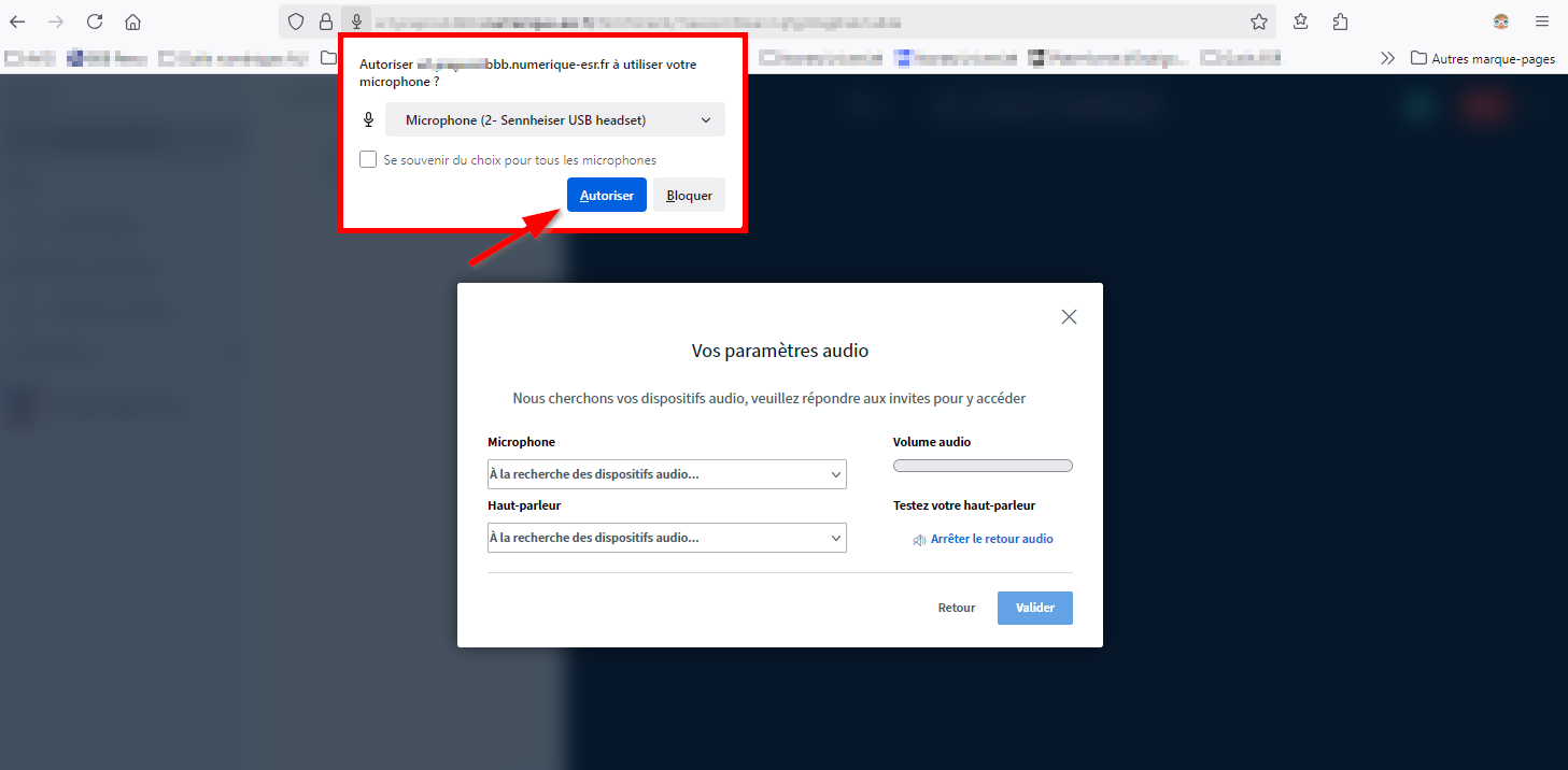 Le navigateur vous demande d'autoriser l’accès à votre microphone.