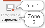 - L’icône (zone 1) lance automatiquement l’enregistrement à partir de la diapositive actuelle
