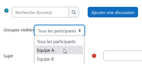 Lorsque vous ajoutez une nouvelle discussion, vous pouvez sélectionner votre groupe.