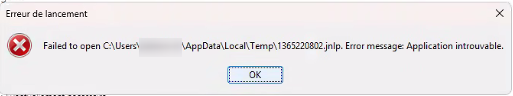 Erreur de lancement [...] application introuvable, MANGUE non ouvert avec OpenWebStart