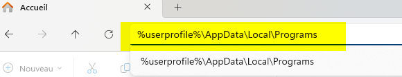 5) Taper %userprofile%\AppData\Local\Programs dans la barre d'adresse