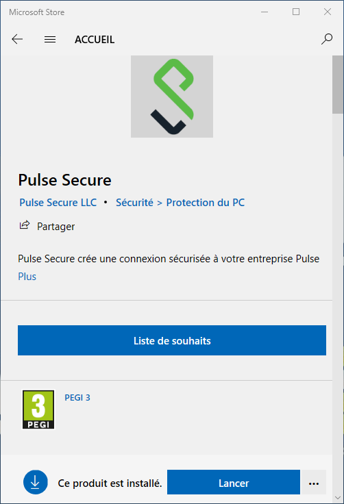 Windows Storeet chercherPulse Secure